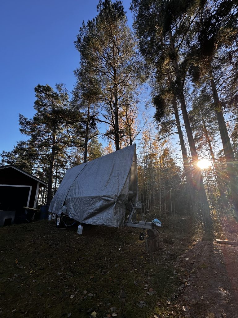 Tämä harjateltta rakennettiin tukevista 3 cm ja 2.5 cm paksuista lankuista. Kaksi A kirjain rakennelmaa, näiden väliin pitkä lankku (vähän kuin purjeveneen masto) sekä ”maston” ja A kirjainten väliin tukipuut jotta saatiin tehtyä kolmioita rakennelmaan. Inspiraatio rakennelmaan seuraavasta linkistä https://kipparilehti.fi/harjateltta-veneen-suojaksi-nain-onnistut-ammattilaisen-vinkeilla/.